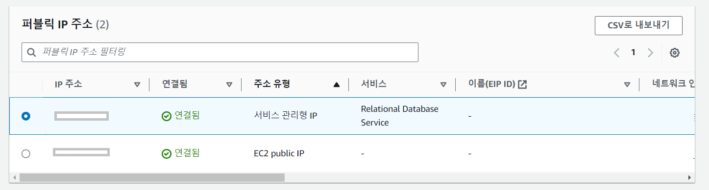 필자는 Public IP를 총 2개 사용 중이었다.